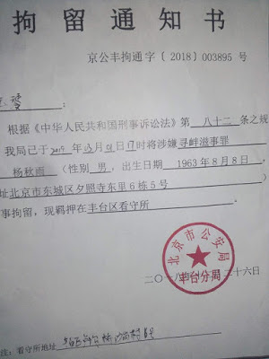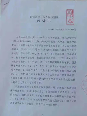 杨秋雨,1963年8月8日出生,北京市人,北京市东城区夕照寺东里6栋居民,基督徒,维权公民。