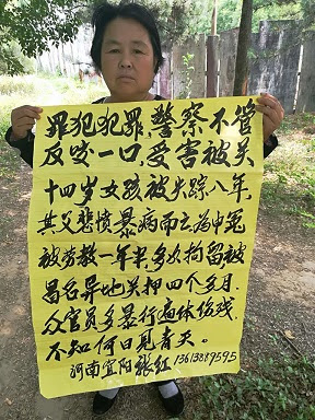 张红,女,河南省洛阳市宜阳县寻村镇人,维权访民。