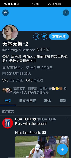 2019年,因使用两个匿名账号,在国际网络平台推特上累计发帖3万多条,被网络监控。