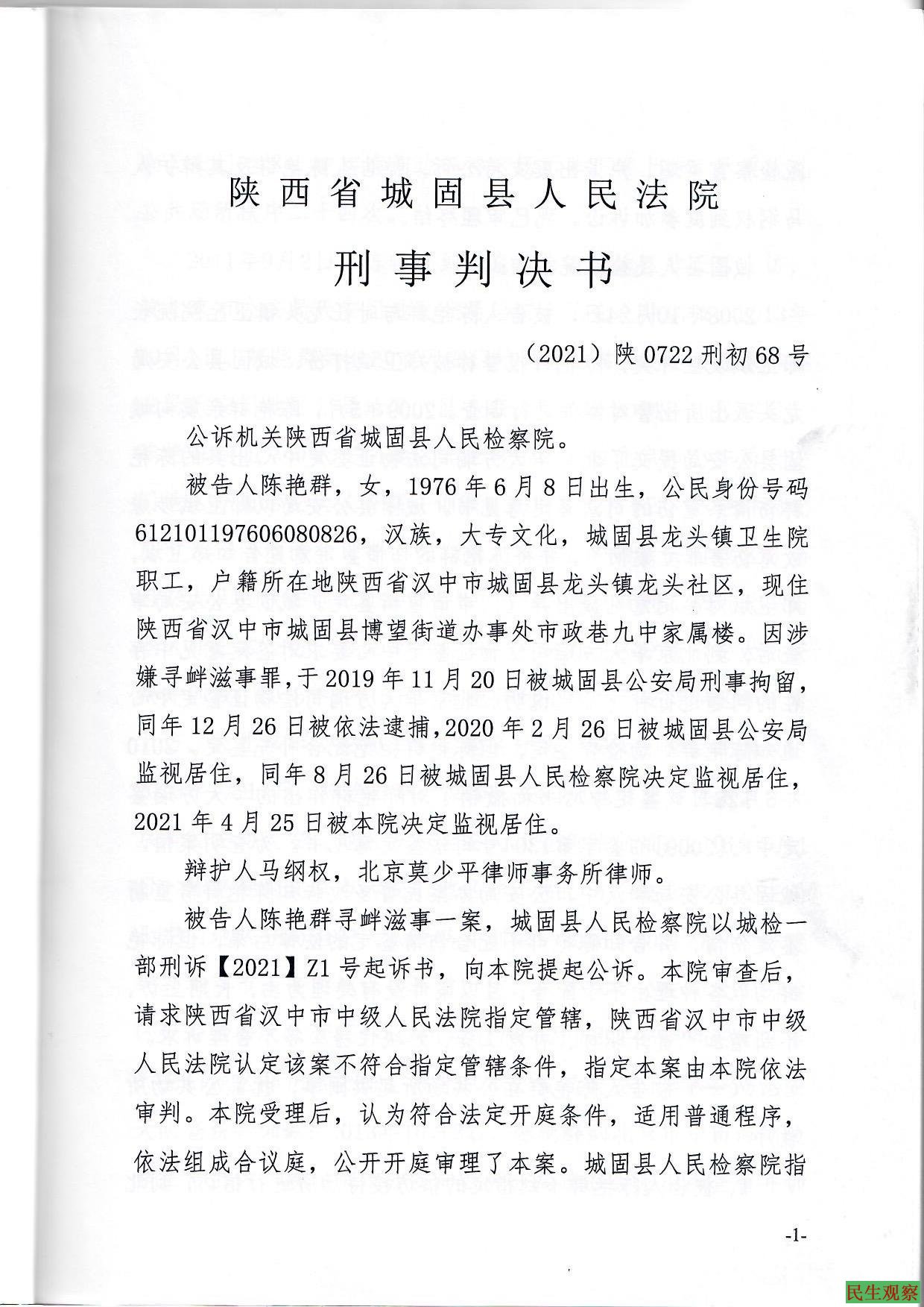 陈艳群,女,1976年6月8日出生,陕西省城固县城固县八栋楼小区居民,原陕西省城固县龙头镇龙头街东街卫生院职工,官员贪腐举报人,维权公民。