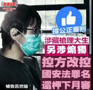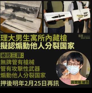 自2020年6月30日起,以自家住所作为武器库,收藏胡椒球弹及大量气枪装备等物品,并在facebook、Instagram 、Telegram上售卖武器及发表所谓“港独”和宣扬仇恨的言论;后因其言行被香港警方获悉,随于同年9月23日,其母子二人统一被香港粉岭警方拘捕,后被以涉嫌“违反《港区国安法》落实罪”移送给香港国安处接手调查;之后,其母子均以涉嫌“无牌管有枪械及弹药”、“未经许可输入战略物品”和“藏有攻击性武器”三罪被起诉;同年9月26日,其母被准予保释,但其仍被香港屯门裁判法院首次提堂;2020年11月20日,又被粉岭法院二度提堂受审,未果。