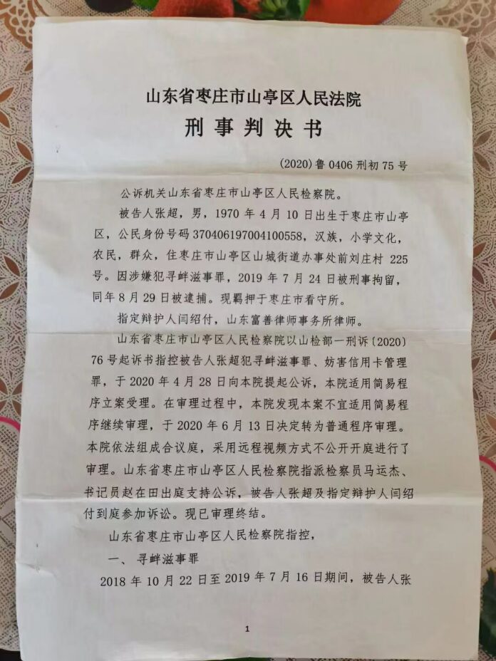 2019年7月23日,在其为出国考察而订购了往返德国的机票和到北京探友的车票之后,7月24日突然即被枣庄市山亭区警方以涉嫌“寻衅滋事罪”刑拘;同年8月29日,又被枣庄市山亭区检察院追加罪名,以涉嫌“寻衅滋事罪”和“妨害信用卡管理罪”予以批捕;2020年7月21日,其案在山东省枣庄市山亭区法院开庭受审;2020年9月8日,终被该法院一审以“寻衅滋事罪”判刑1年8个月,以“妨害信用卡管理罪”判处拘役6个月,并处罚金人民币1万元,最后决定执行有期徒刑1年8个月,并处罚金人民币1万元;2021年3月23日,刑满释放。