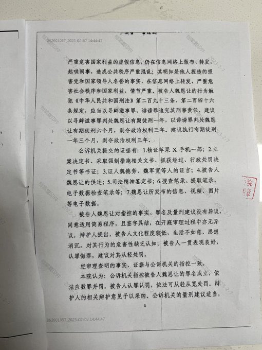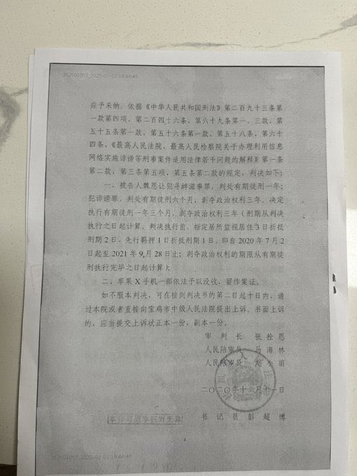 2020年12月11日,被扶风县法院以寻衅滋事罪、诽谤罪判处有期徒刑1年3个月,刑期至:2021年9月28日。