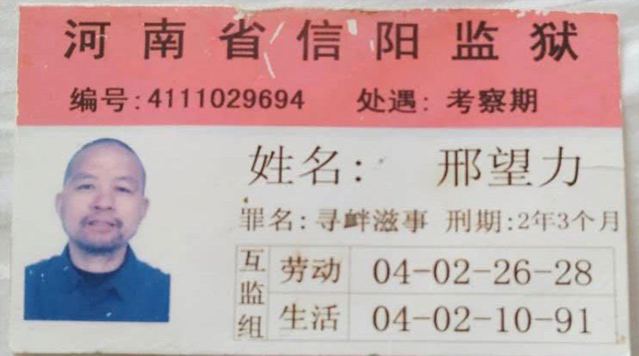 据邢望力之子邢鉴通报:“2025年12月3日,河南省驻马店监狱(又称豫南监狱)致电家母,通知表示:邢望力 已被押送至该监狱服刑。狱方表示,已以挂号信形式寄出《入监通知书》,预计家属将在一周后收到。邢望力曾被劳教1年。此次是他第5次被判刑入狱,刑期累计12年8个月,此前邢望力曾服刑于洛阳监狱一次,信阳监狱两次。”